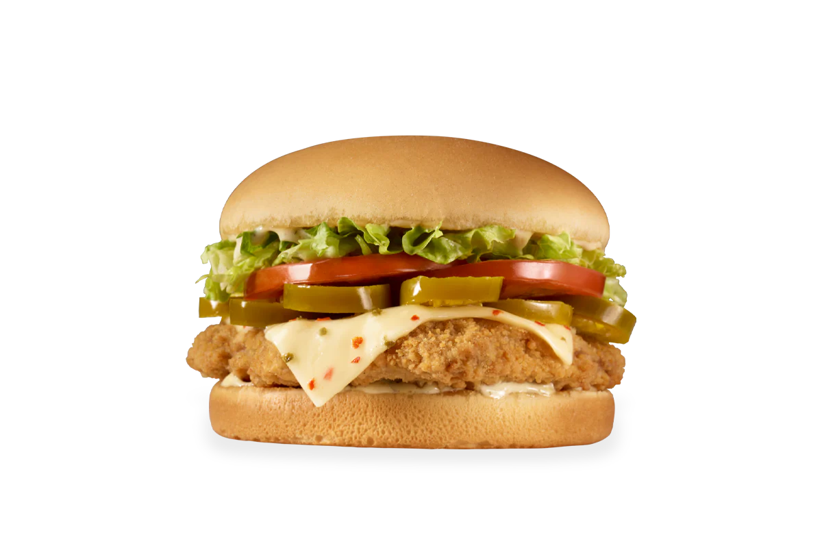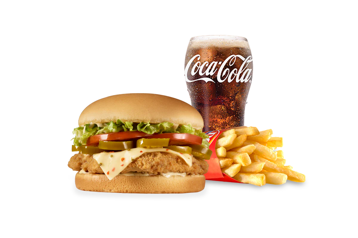 Bun with Breaded Chicken Fillet, Salad Dressing, Lettuce and Tomato. Served with Regular Fries and Medium Drink.
